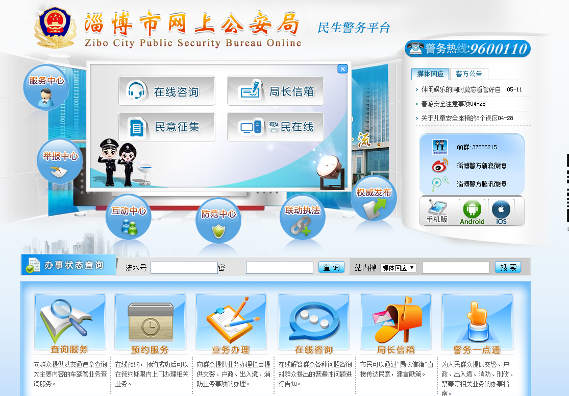提供了局長信箱、在線咨詢、民意征集、警民在線等互動功能。