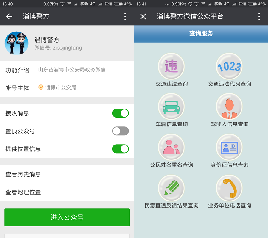 提供交通違法查詢、交通違法行為代碼查詢、車(chē)輛信息查詢、駕駛?cè)诵畔⒉樵?、公民姓名重名查詢、身份證信息查詢、民意直通反饋結(jié)果查詢。